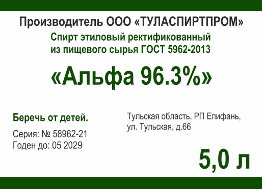 Купить спирт Альфа ректификованный 5 л от производителя «ТулаСпиртПром».